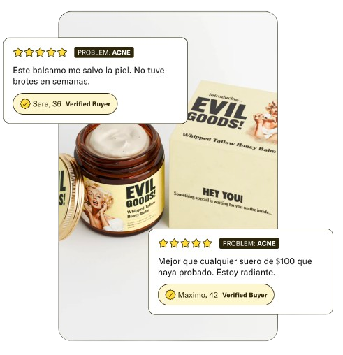He probado todas las ofertas de cuidado de la piel carísimas, pero nada funcionó a largo plazo. EVIL GOODS lo cambió todo. Después de 30 días, mi piel no solo está más limpia, sino más fuerte. Se acabaron las quemaduras y los brotes misteriosos. Solo una piel auténtica, calmada y que de verdad sana. Este producto es la verdad.