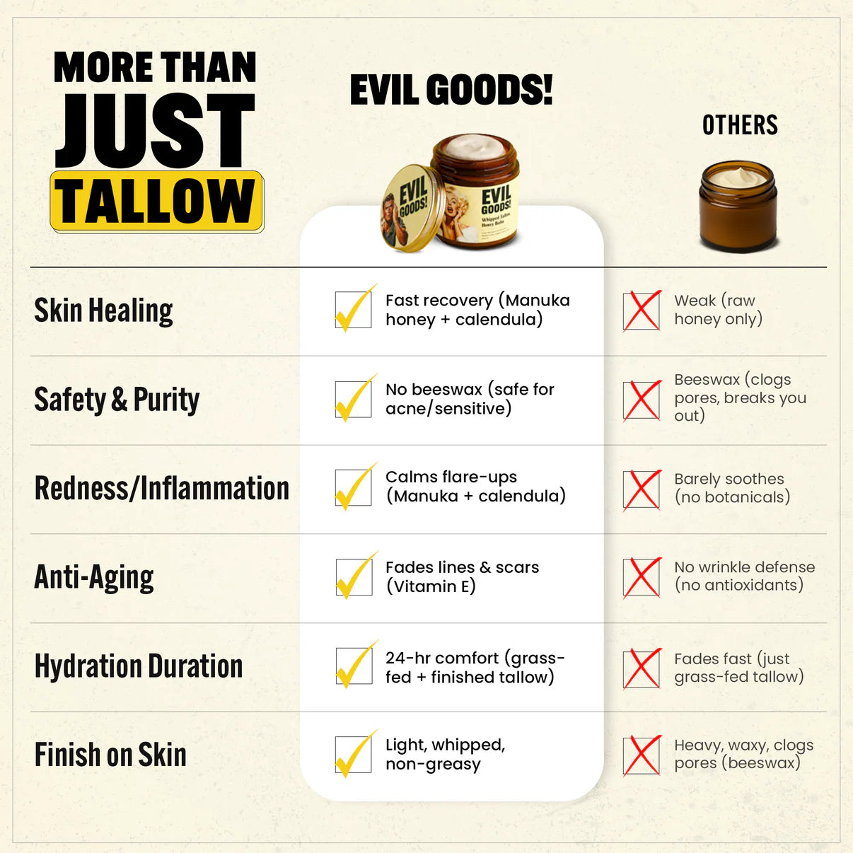 🌿 Ingredientes reales, resultados reales: sebo grass-fed, miel de manuka, aceite de oliva prensado en frío y vitamina E — nada más.