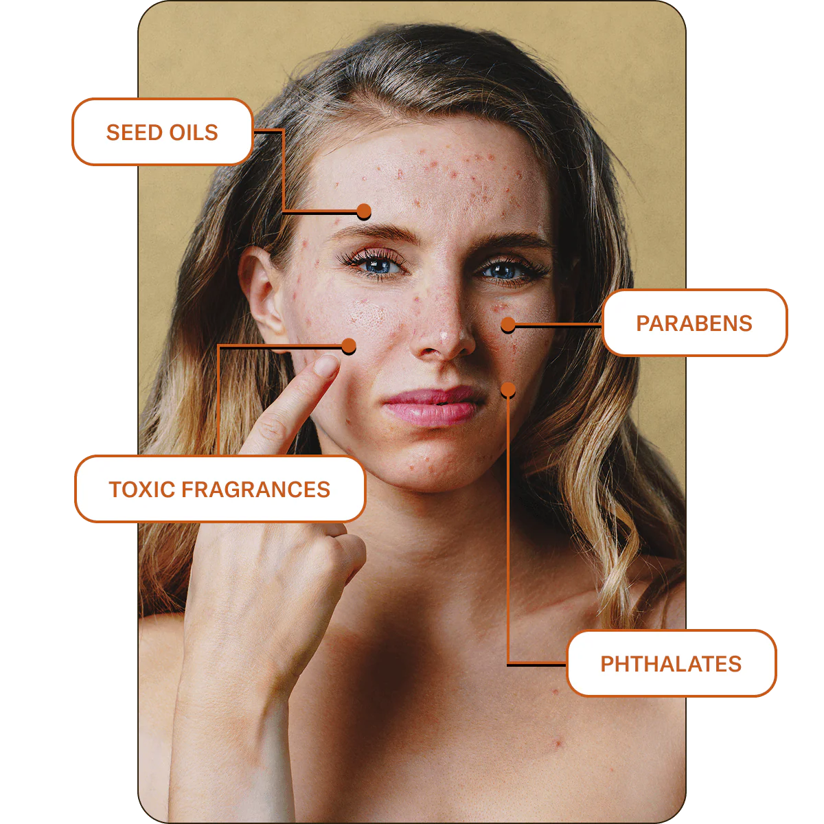 Las cremas hidratantes y los productos para el cuidado de la piel habituales están cargados de sustancias químicas tóxicas que no solo se quedan en la piel, sino que penetran en el torrente sanguíneo y alteran el organismo desde dentro.Estas sustancias no solo son ineficaces, sino que son directamente dañinas.